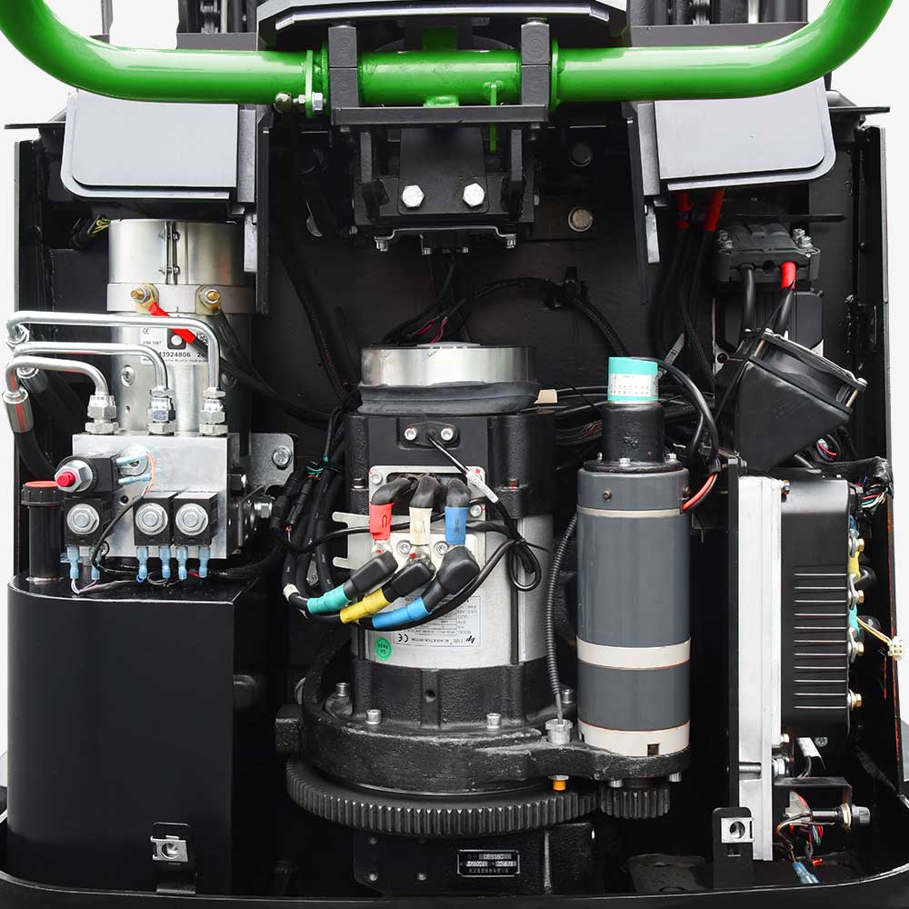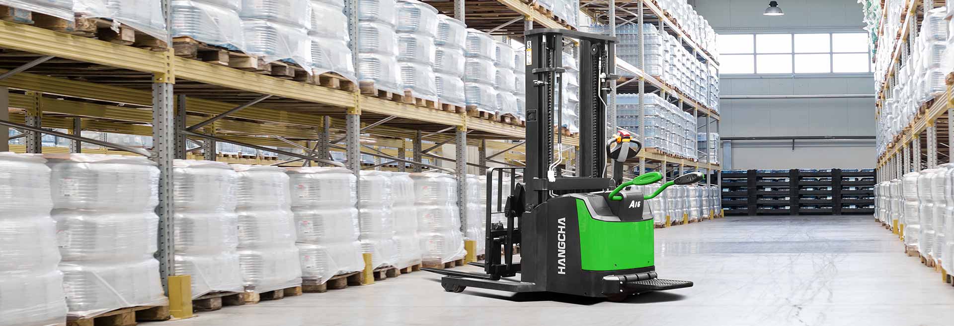 The A series pallet stacker with reach fork moves goods forward and backward with a scissor fork extension system. It acts as a counterbalanced stacker when its fork is extended, which can handle non-standard pallets, enclosed pallets, and enclosed shelves easily; and acts as a straddle stacker when its fork is retracted, which can operate flexibly in narrow passage.