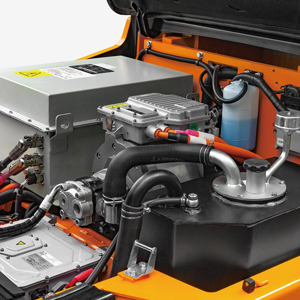 A water-cooling system with a good heat dissipation effect is used on a new energy forklift for the first time, so that the forklift can absolutely carry out long-time and high-intensity operations as internal combustion forklifts.